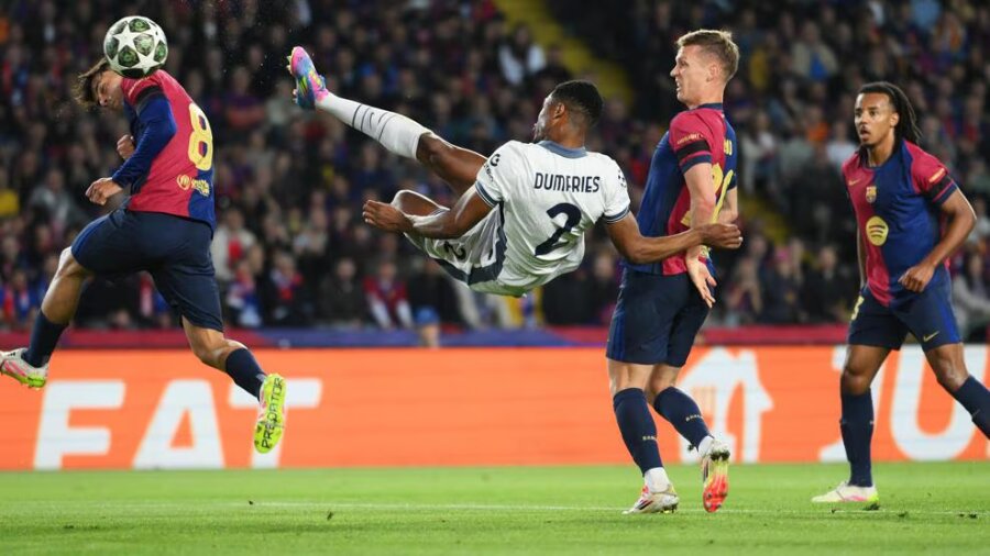 „Barcelonos“ bėdos čia nesibaigė. 21-ąją minutę pirmojo įvarčio rezultatyvaus perdavimo autorius „Inter“ pranašumą padvigubino, tačiau katalonų jaunasis talentas Lamine'as Yamalis jau po trijų minučių atsilikimą sušvelnino – 1:2.