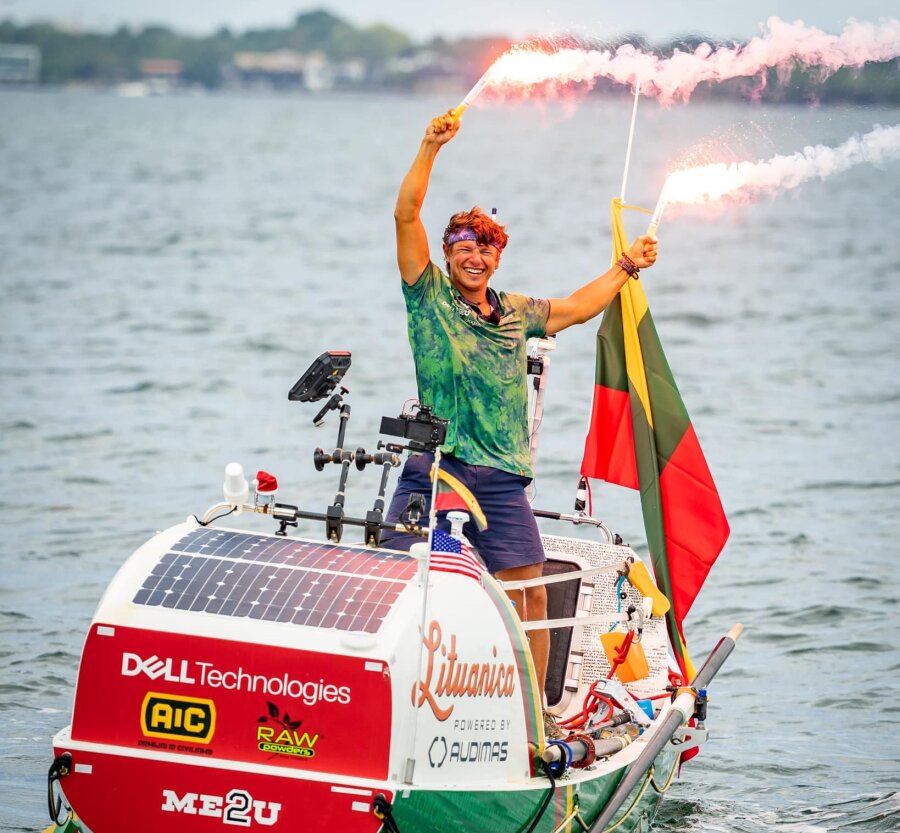 „Gyvenimas – arba drąsus nuotykis, arba niekas! Po 120 dienų, 14 valandų ir 48 minučių Atlanto vandenynas yra perplauktas. Daug emocijų, didžiulis išbandymas ir dešimtoji gyvenimo kelionė oficialiai įgyvendinta!!!“, – rašė lietuvis.