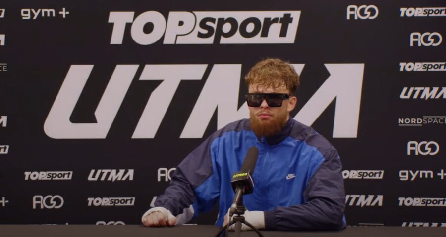 UTMA spaudos konferencijoje po „UTMA Rising“ turnyro Dominykas Dirkstys juokaudamas šoko į akis organizacijos prodiuseriui.