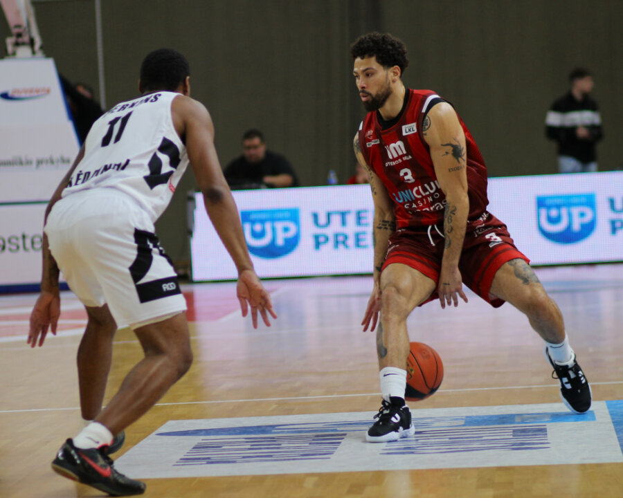 Laimono Eglinsko treniruojama komanda išvykoje 90:84 (29:20, 25:22, 15:23, 21:19) palaužė Utenos „Juventus“ (0-1) krepšininkus, kuriems tai buvo pirmosios sezono rungtynės, ir atsitiesė po pirmenybių starte patirtos nesėkmės prieš Vilniaus „Rytą“.